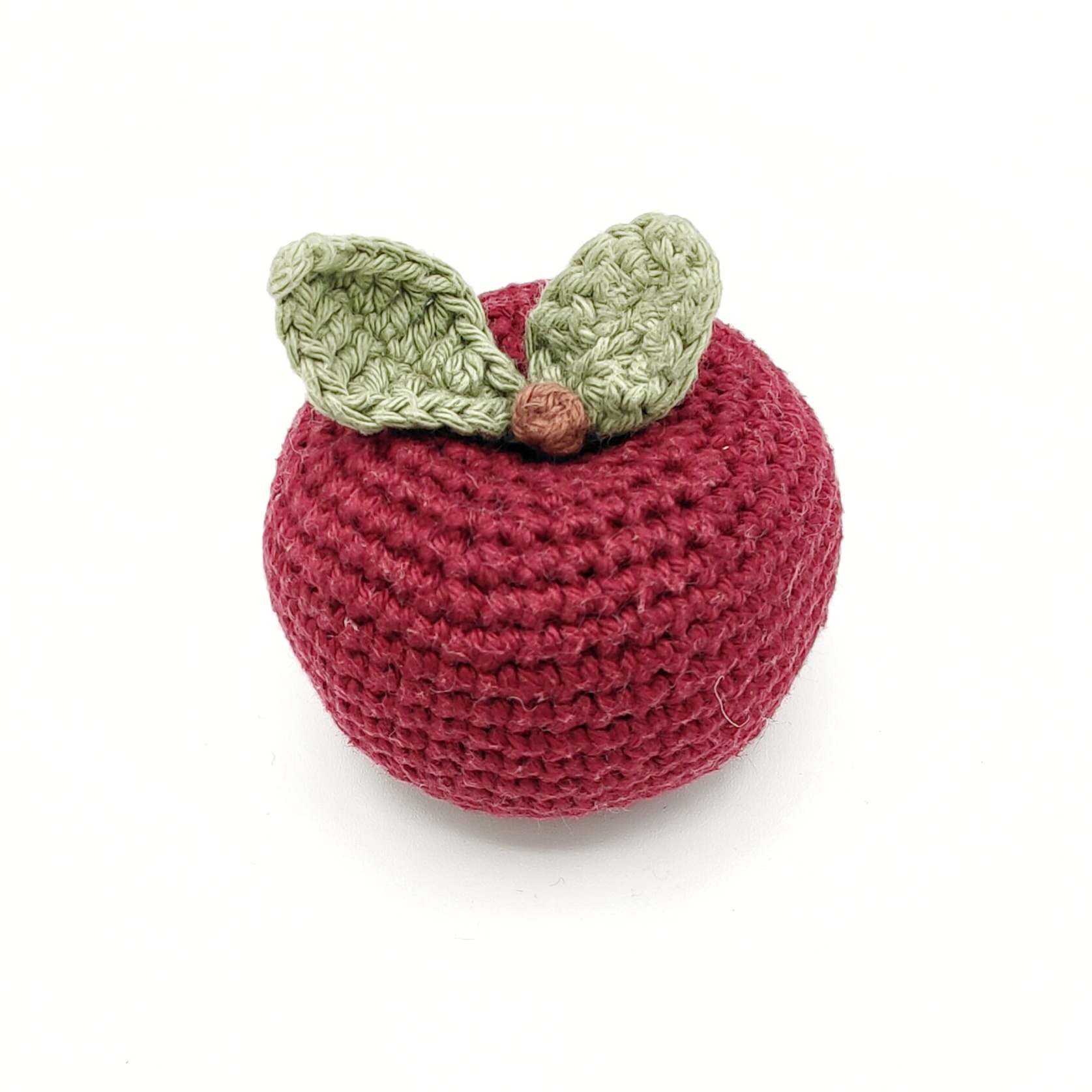 Die gratis Anleitung zum Häkelapfel (ca. 6 cm Größe) gibt es über den Download Button unten. Den ursprünglichen Post zum Häkelapfel mit vielen weiteren Häkelfrüchten gibt es hier.