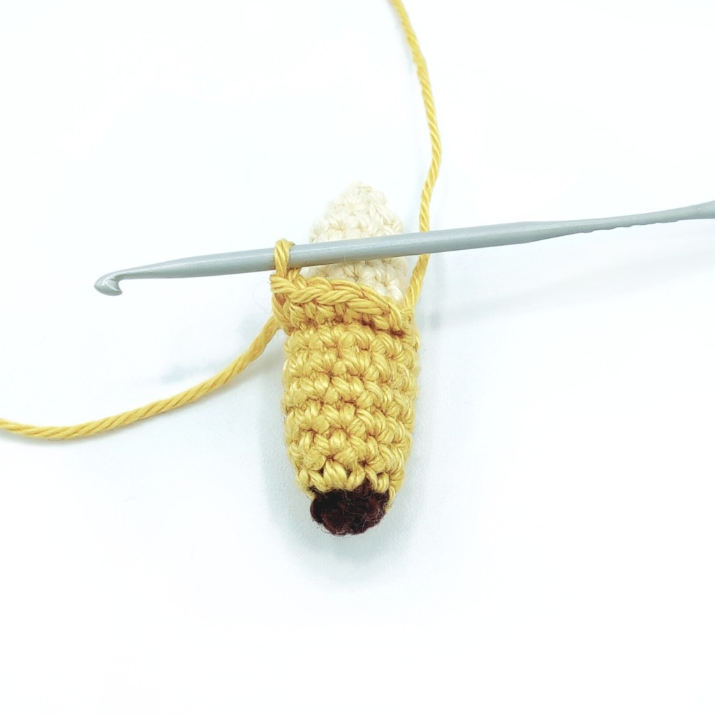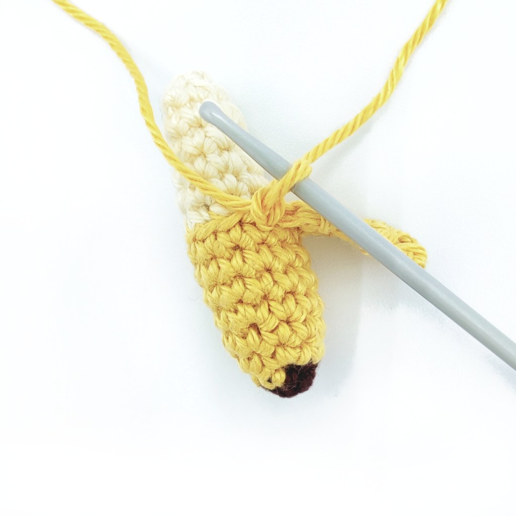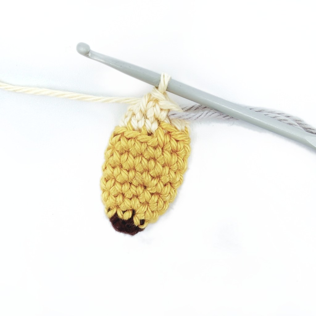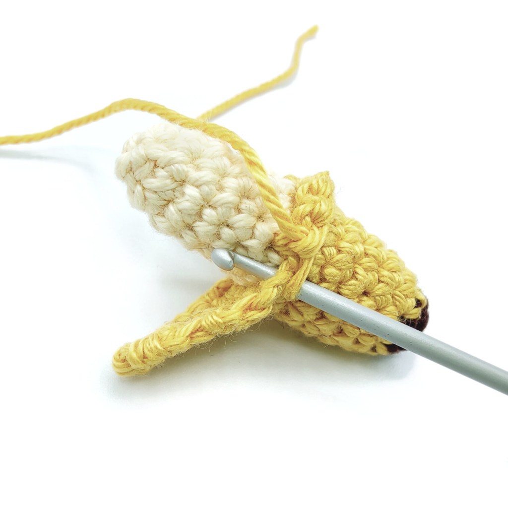 Die Häkelbanane wird in Spiralrunden gehäkelt.