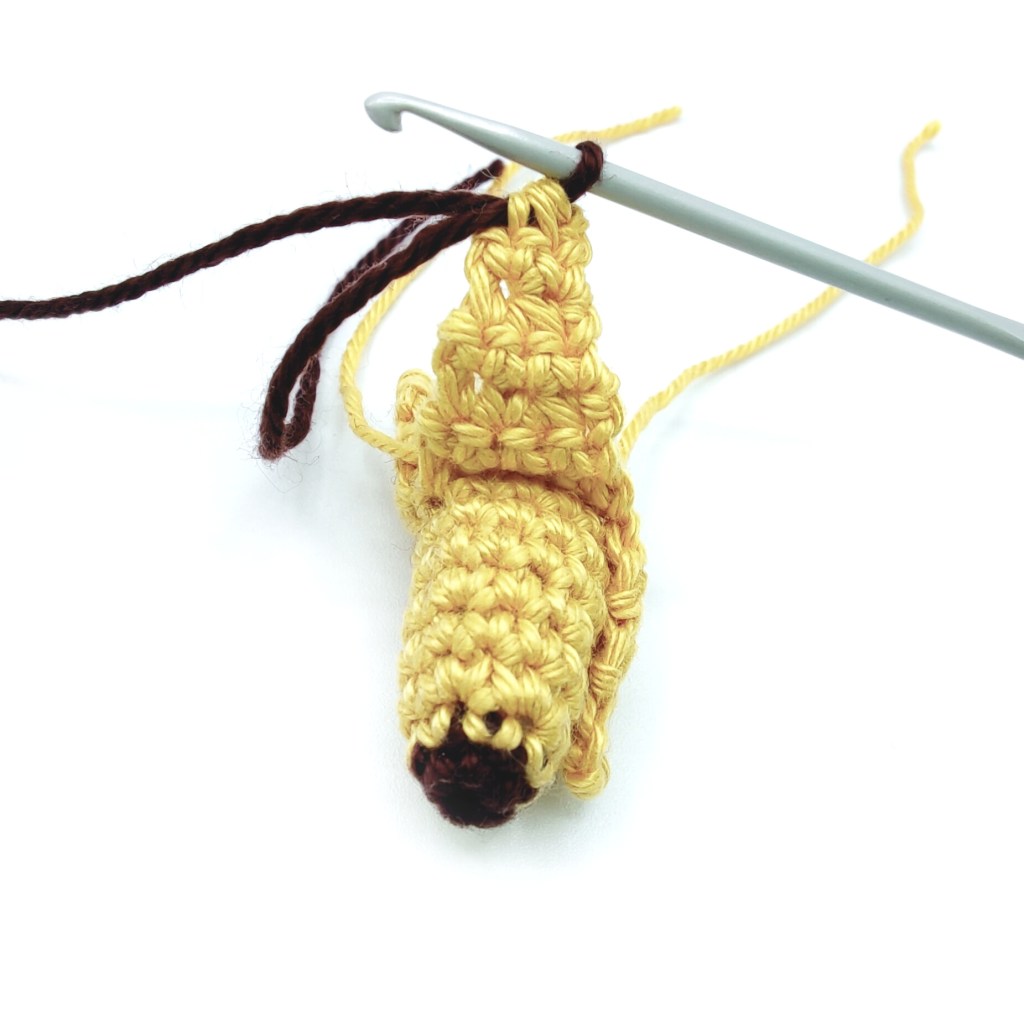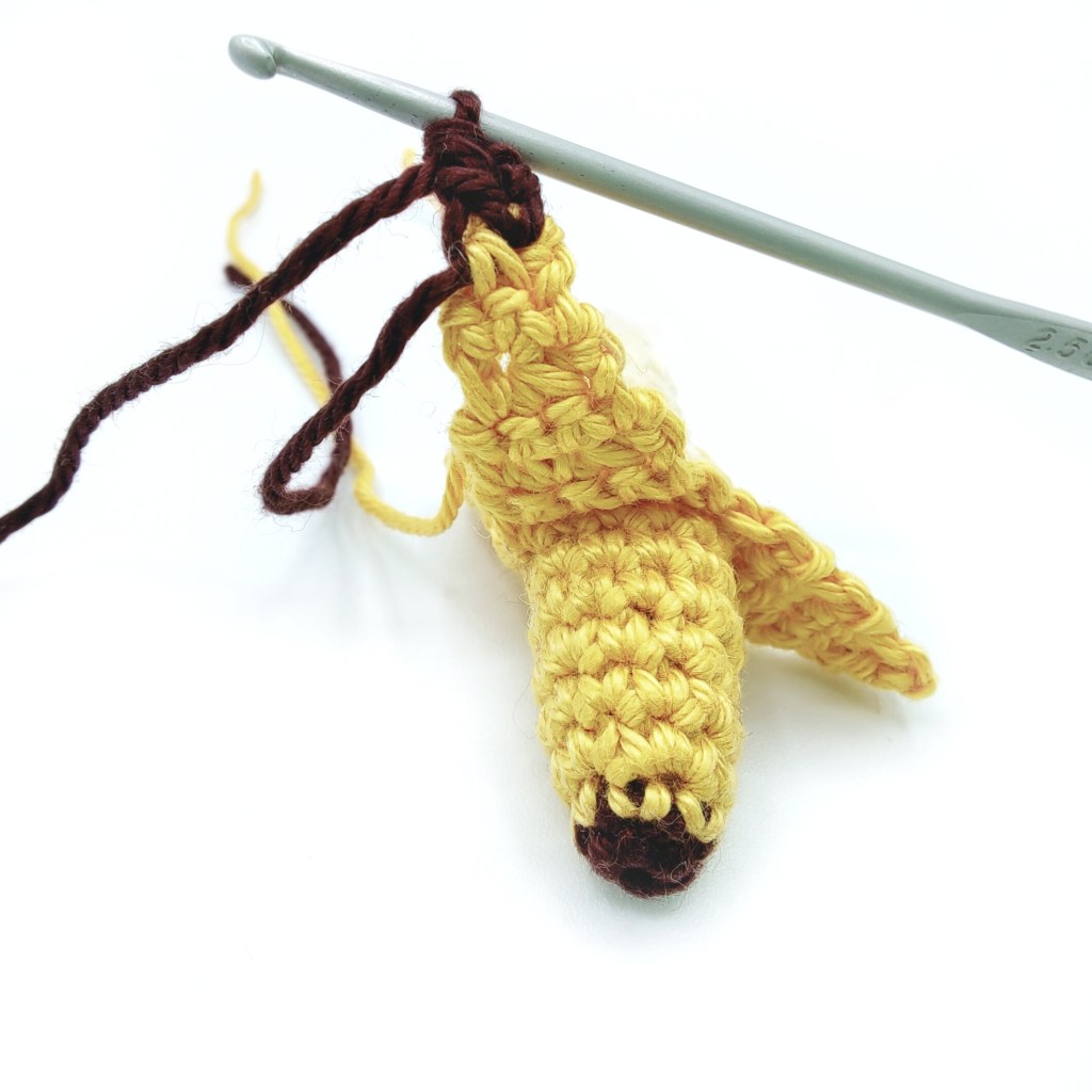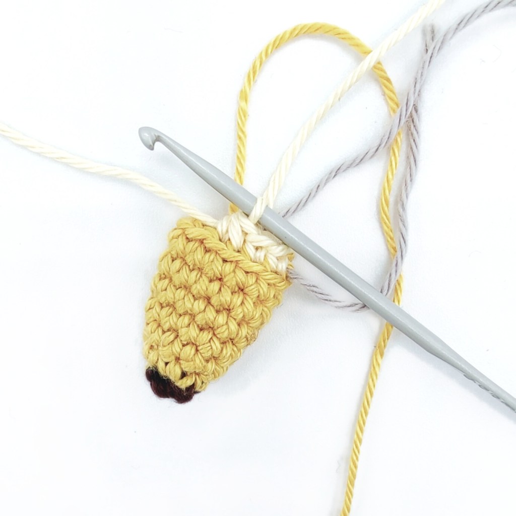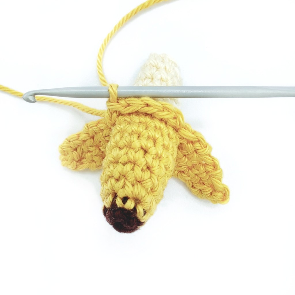 Die Häkelbanane wird in Spiralrunden gehäkelt.