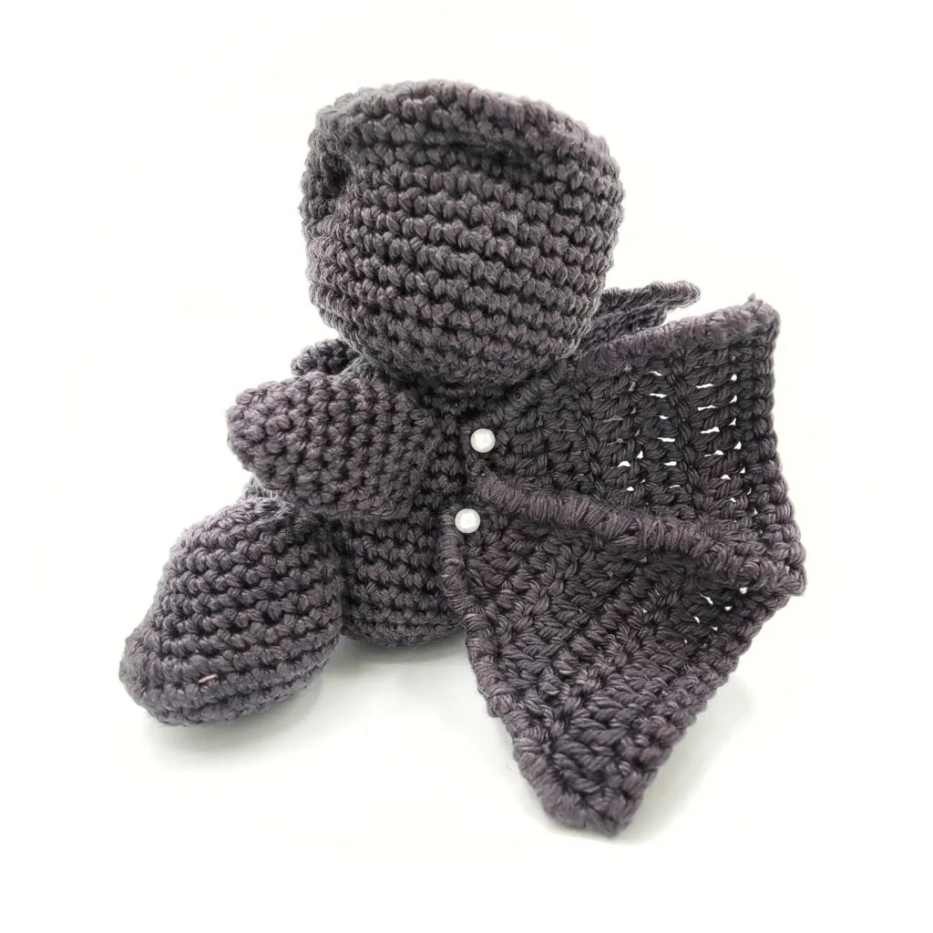 Variante 1, wie man Teile wunderschön und ohne Annähen verbinden kann: die Teile beim Arbeiten direkt anhäkeln. Bei Amigurumis bedeutet das, dass du zuerst die Arme fertigstellst, und während du den Körper häkelst, häkelst du die Arme einfach an der richtigen Stelle an. Das spart Zeit und verhindert, dass die Arme nicht gleichmässig angenäht werden.