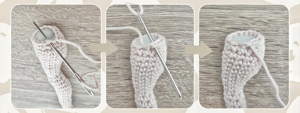 Du beendest für gewöhnlich deine Häkelrunden mit einer Kettmasche und vernähst dann das Fadenende, nicht wahr? Was, wenn es noch besser geht? Schließe die Runde mit einer Kettmasche* ab und steche mit einer Wollnadel das Fadenende von vorne nach hinten durch die nächste Masche, und dann von hinten nach vorne zurück durch die Kettmasche. Ziehe das Ende fest zusammen. Das Fadenende kann jetzt vernäht werden, aber es reicht auch einfach ein Knoten eng an der Kettmasche anliegend.