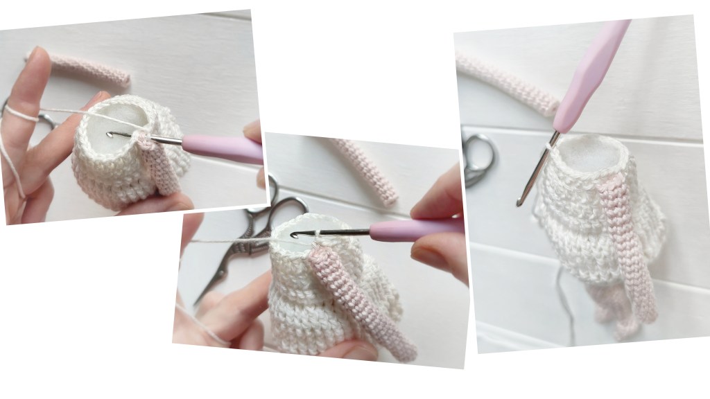 Damit die verbundenen Runden noch unscheinbarer werden, häkle die Verbindungs-Kettmaschen nur in die vorderen Maschenglieder der obersten LM.