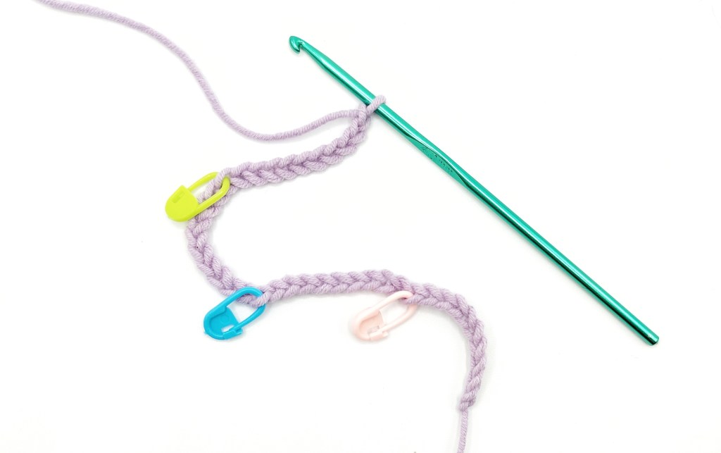 Wenn du eine lange Luftmaschenkette häkelst, setze in regelmässigen Abständen einen Maschenmarkierer oder ziehe den Markierer z.B alle 10 Maschen weiter. So musst du nicht von vorne zu zählen beginnen, solltest du dich mal verzählen.