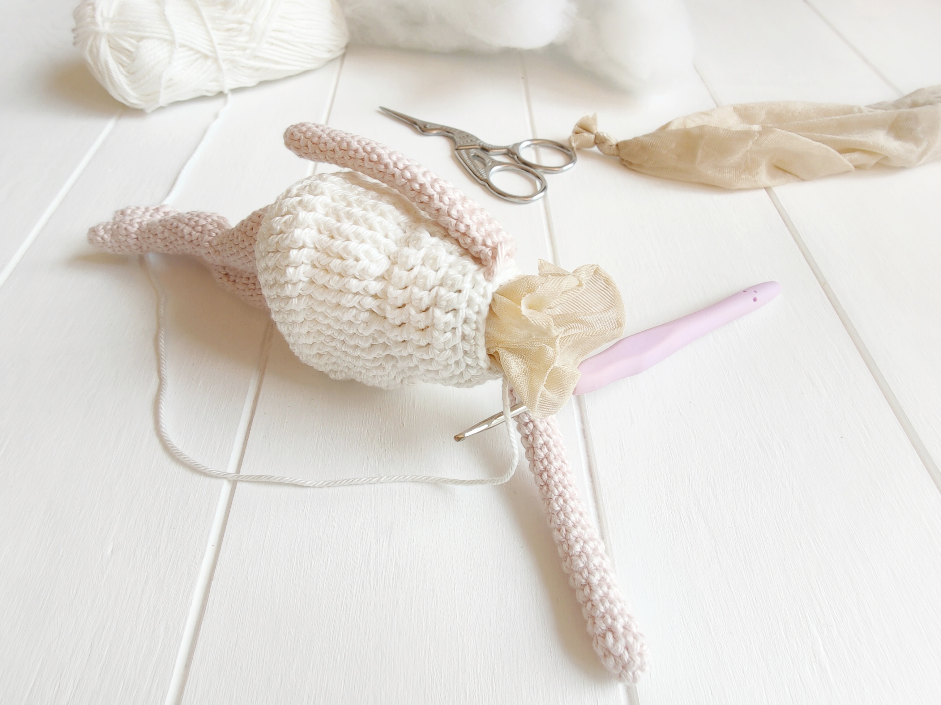 Du hast deine Figur etwas zu lose gehäkelt und jetzt schaut die Füllwatte raus? Kein Problem, nimm einfach einen alten Strumpf (möglichst in der passenden Helligkeit), fülle diese mit Watte und stopfe den befüllten Strumpf in die Figur. Lasse den Strumpf so lange offen, bis du die Figur nicht mehr nachstopfen musst, oder stopfe die Figur im Voraus und häkle um den Strumpf herum die Figur zu Ende.
