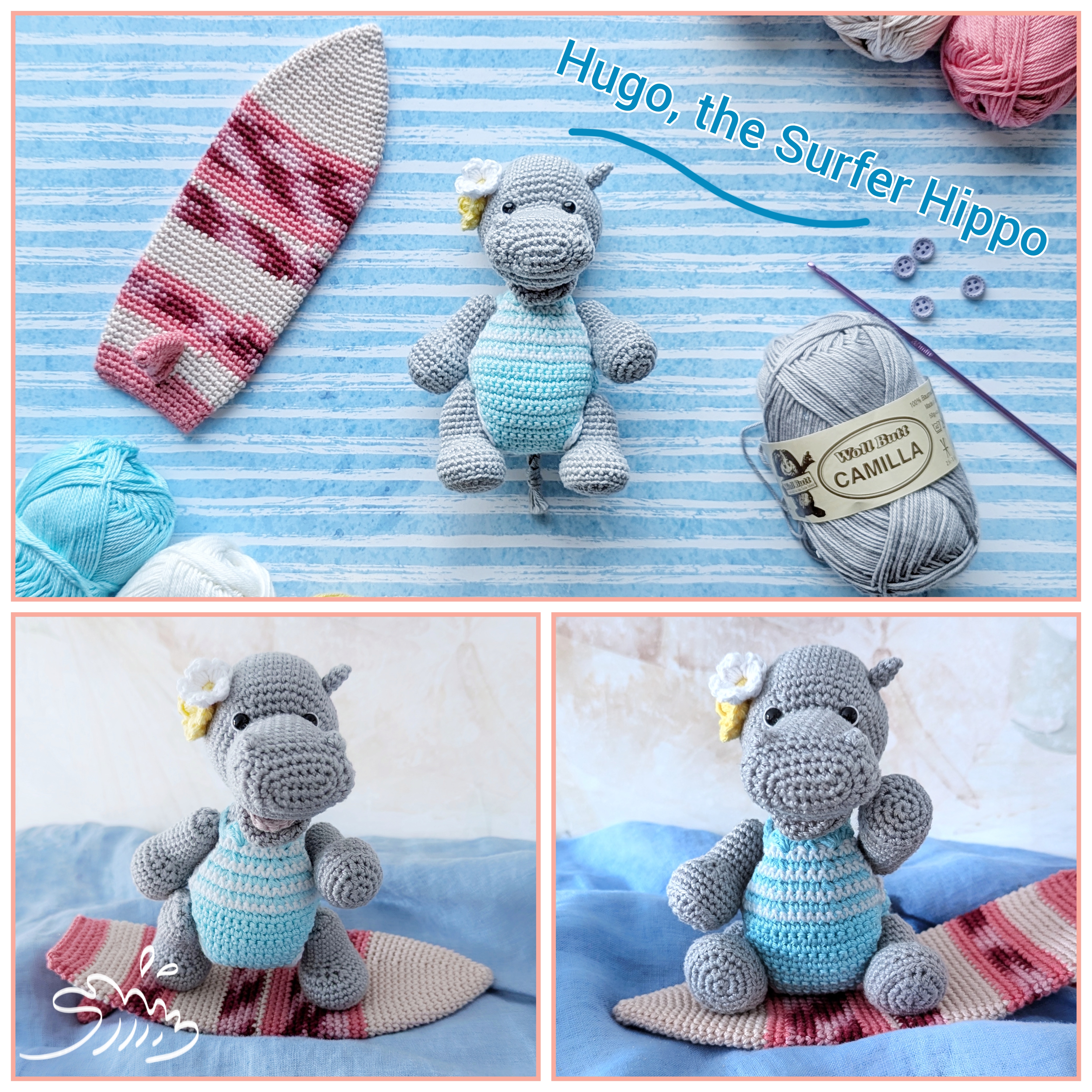 Lerne Hugo kennen, das surfende Häkel-Nilpferd!