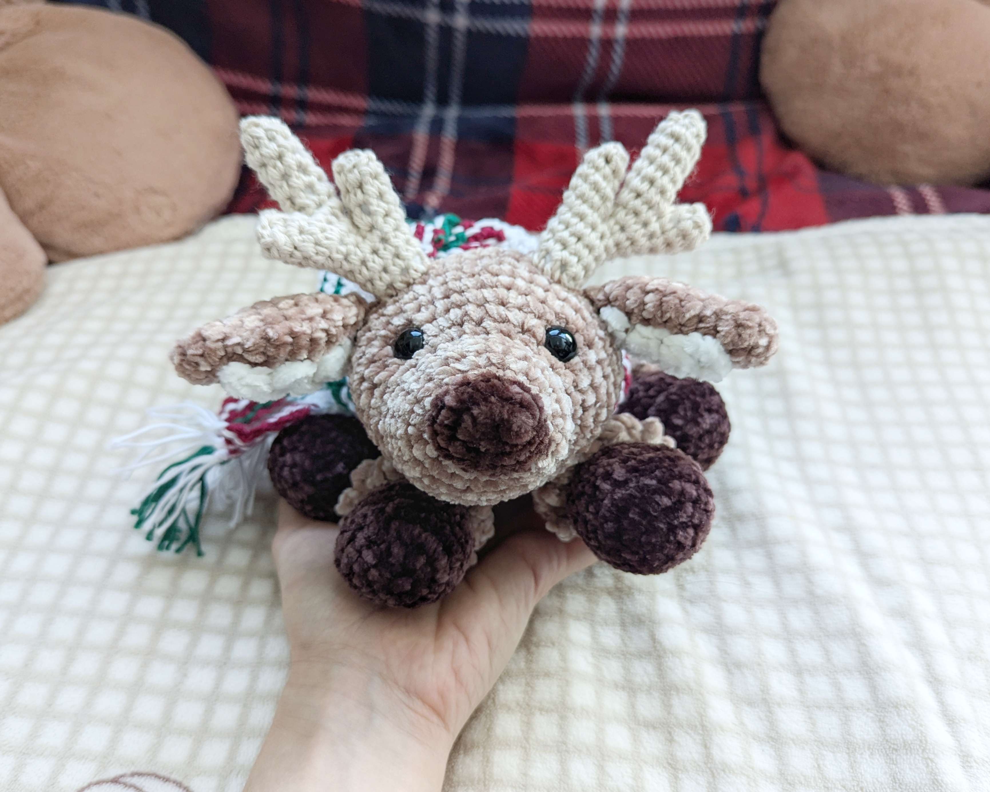 Mit superfeinem Baumwollgarn wird das Rentier etwa 14 cm groß. Ein schönes Weihnachtsgeschenk oder eine süße Deko für den Weihnachtstisch.
