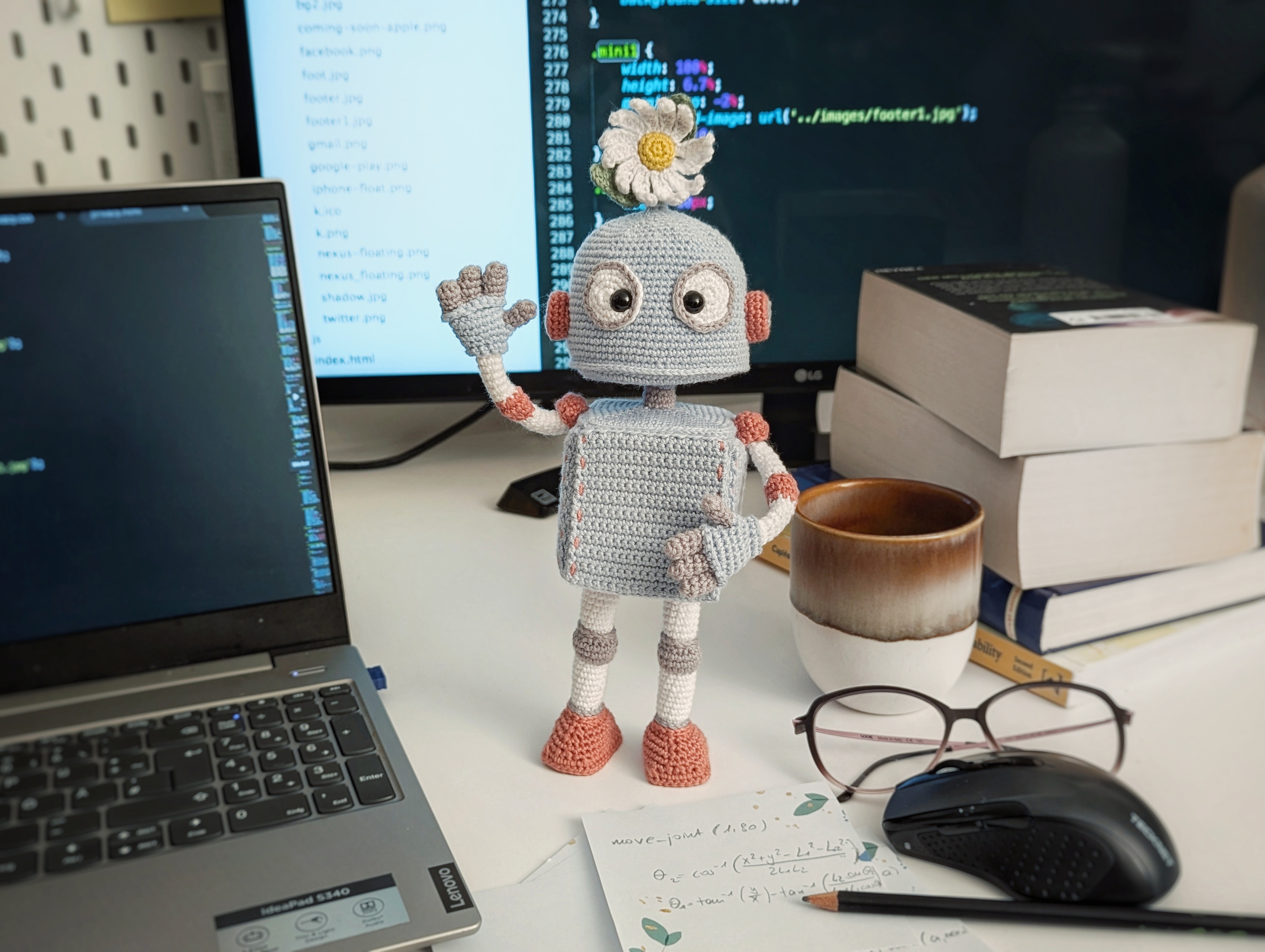 Dieser Roboter ist der ultimative Arbeitsplatz-Freund. Egal, ob du etwas Spaßiges zur Dekoration deines Schreibtisches möchtest oder eine kreative Möglichkeit suchst, Nachrichten oder Schokolade an deine Kollegen zu überreichen (lege einfach die Nachricht oder Schokolade anstelle der Kaffeetasse in seinen Bauch), dieser gehäkelte Roboter wird sicherlich ein kleines Highlight in deinem Büro sein. Und keine Sorge, selbst die ernsten Kollegen werden BrewBots Charme nicht widerstehen können. Vom kaffeebegeisterten Kollegen bis zum minimalistischen Geschäftsführer – jeder wird seine charmante Mischung aus Funktionalität und Spaß zu schätzen wissen. Außerdem erinnert die zarte Blume, die aus seinem Kopf wächst, uns alle daran, kreativ zu bleiben, egal wie hektisch der Arbeitstag wird.