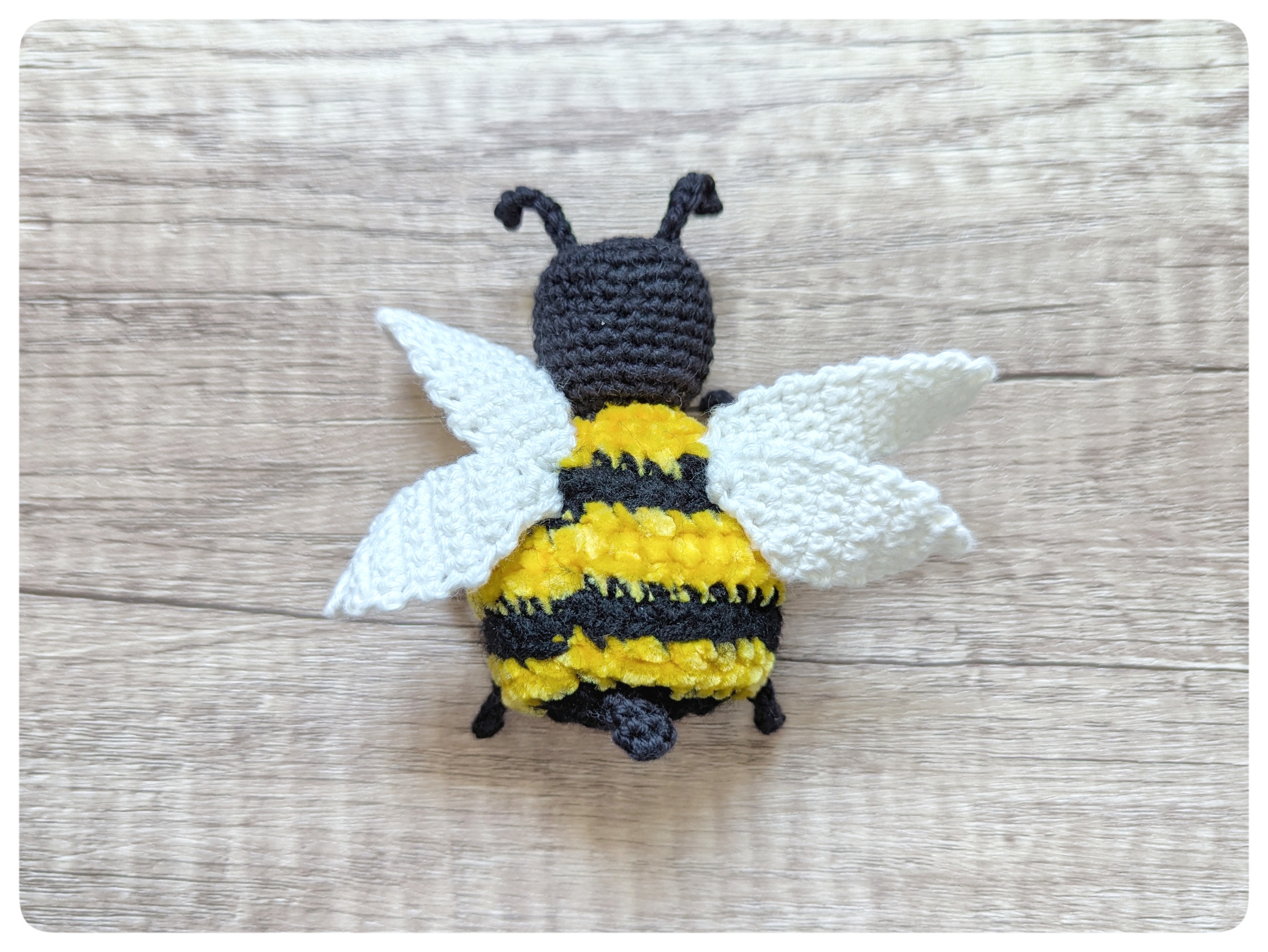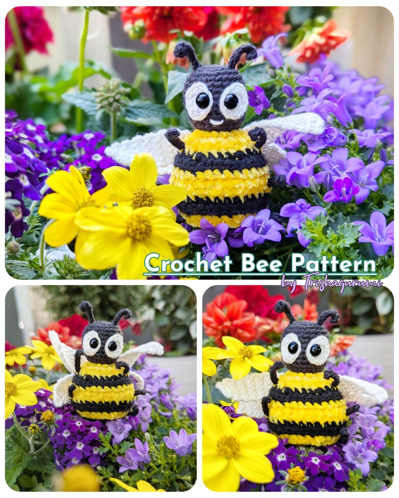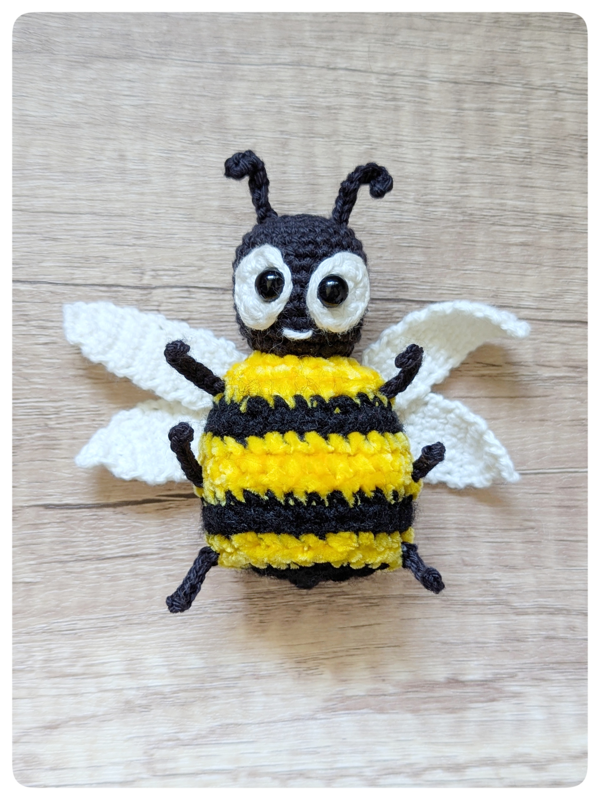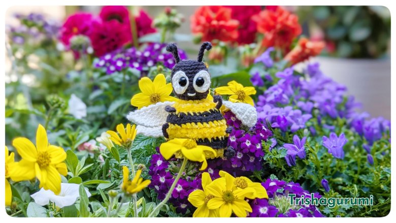 Mit der Häkelanleitung machst du in wenigen Schritten deine eigene Häkelbiene mit mini-Dornen, einem (optionalen) Lächeln, großen Augen und dünnen Beinchen, sie sich gekonnt an deine Pflanzen am Fensterbrett, dem Garten oder der Terrasse hängen.