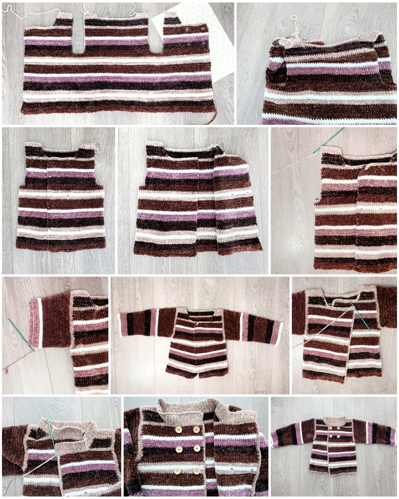 Ich habe mich bei der Gestaltung von klassischen Retro-Jacken inspirieren lassen: einfache Linien, weiche Kanten und ein Hauch Nostalgie, kombiniert mit moderner Farbwahl. Herausgekommen ist ein Stück, das sowohl praktisch als auch ein echter Hingucker ist – gemütlich wie eine Decke, aber tragbar wie eine Lieblingsjacke.