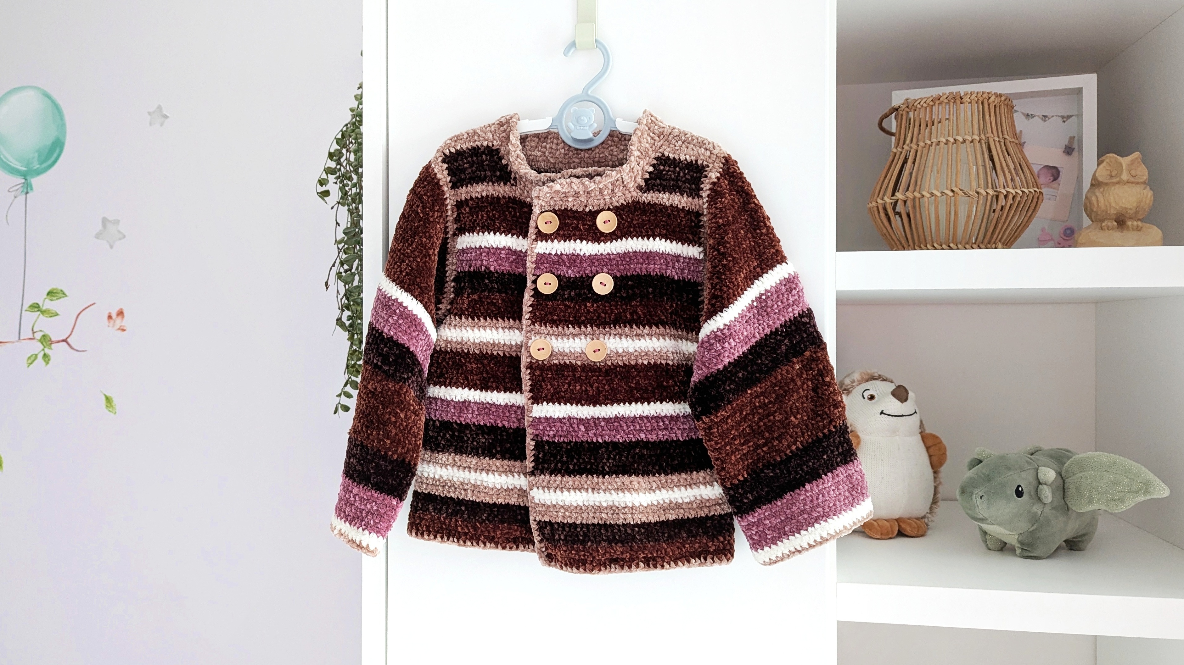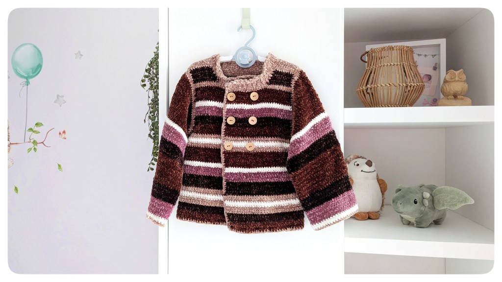 Die plüschige Kinder-Häkeljacke ist nun fertig!