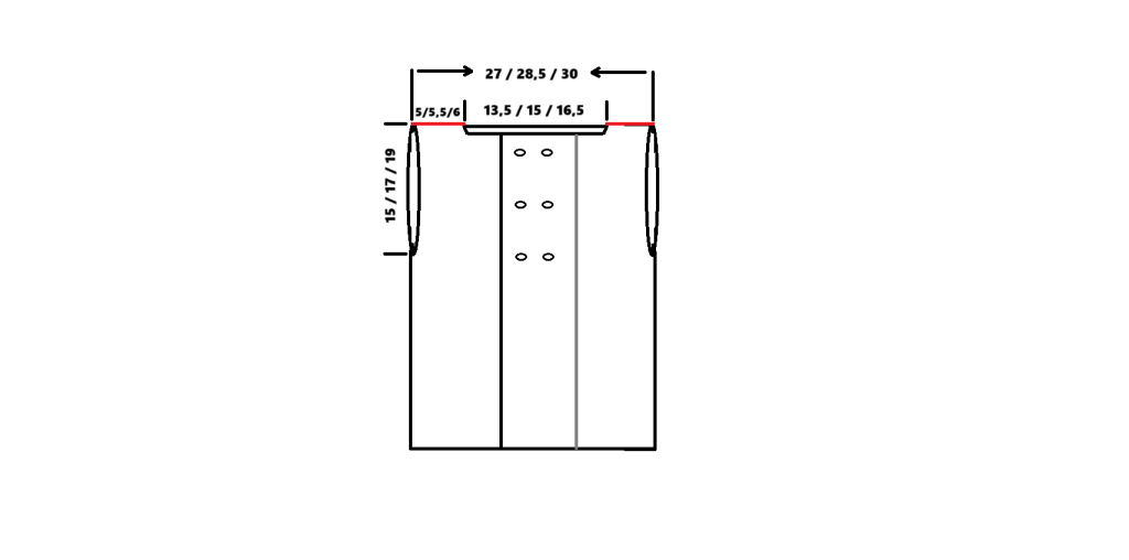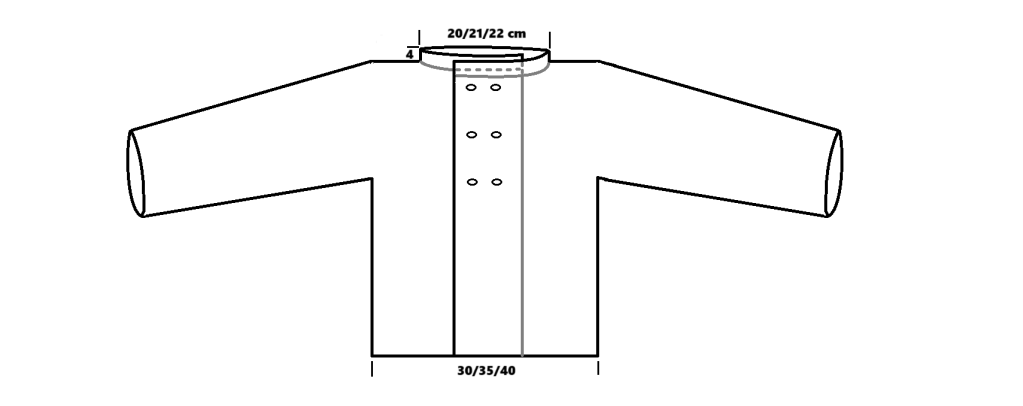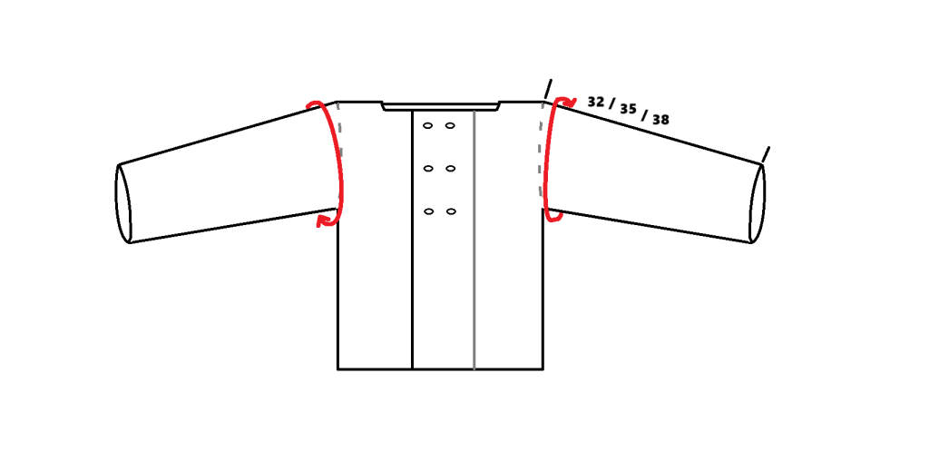 Gleichzeitig wird der Körper in Armausschnitte, Vorderteil und Rückenteil getrennt: